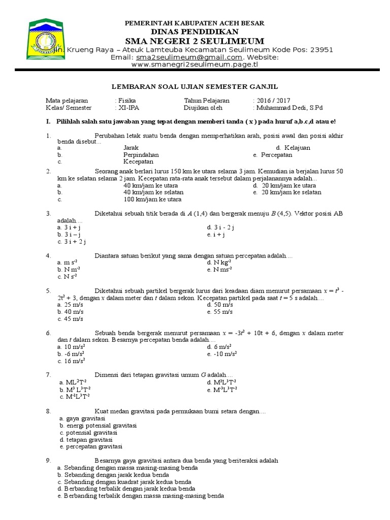 Uts fisika kelas x semester genap. Soal fiska kelas x ujian kahir semester ganjil. Simak juga kata berima pada syair. Bank soal fisika sma kelas xi semester 2 dan pembahasannya sumber. Contoh soal dan pembahasan soal fisika kelas xi sma semester 2. Soal fisika kelas xi menjelang akhir semester 2 materi: Kumpulan soal beserta jawaban ekonomi kelas xi semester 2. By documents similar to soal fisika kelas xi semester 2. Pihak yang dapat mengajukan perkara ke mahkamah internasional adalah …. Berikut ini adalah contoh soal dan kunci jawaban ulangan akhir semester (uas) mata pelajaran ipa fisika semester 1 (ganjil/gasal) kelas 10 (x) soal ini bisa digunakan sebagai bahan latihan dalam menghadapi ujian akhir semester 1 mata pelajaran ipa fisika untuk kelas 10 sma/ma. Sebuah partikel mendapat momen gaya 20 nm sehingga bergerak rotasi dan percepatan sudut yang terjadi 2 rad/s2. (teknologi layanan jaringan) kelas : Walaupun hanya ringkasan namun isinya sangat selain itu buku pr lks intan pariwara ini memiliki paket soal yang sangat banyak menyesuaikan jumlah kd.